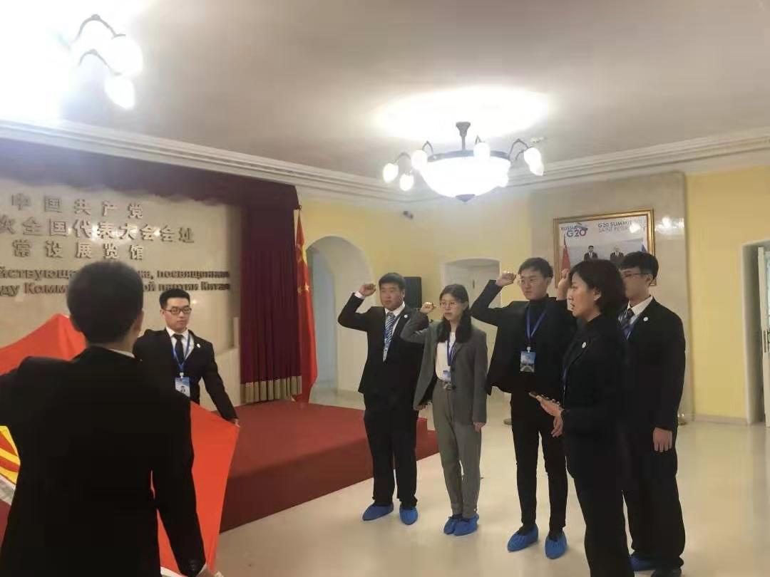 结合展出的历史照片和档案资料,同学们跟随着乔蕊老师共同回顾了中国共产党98年的奋斗历程,通过“移动党课”学习,同学们纷纷表示应不忘初心,牢记使命,刻苦钻研,不负韶华。面对党旗,我院学生在乔蕊老师带领下重温入党誓词。