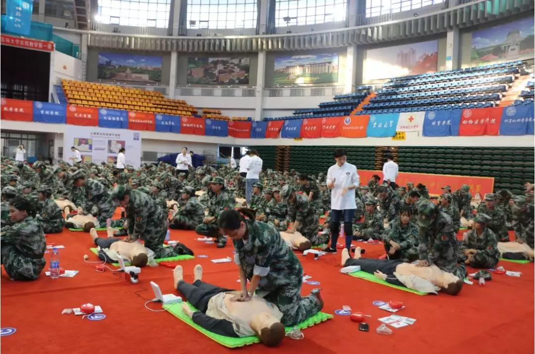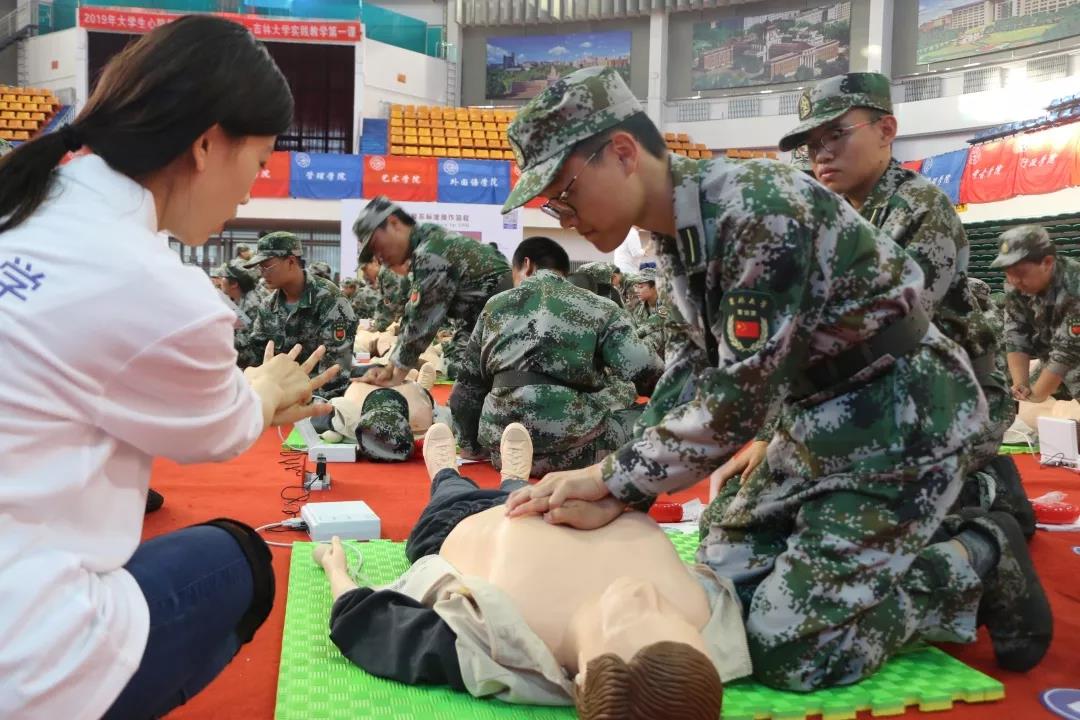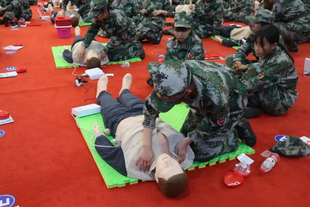 9月5日下午,我院2019级新生在军训期间进行了一堂生动实用的实践教学课——心肺复苏急救技能培训。