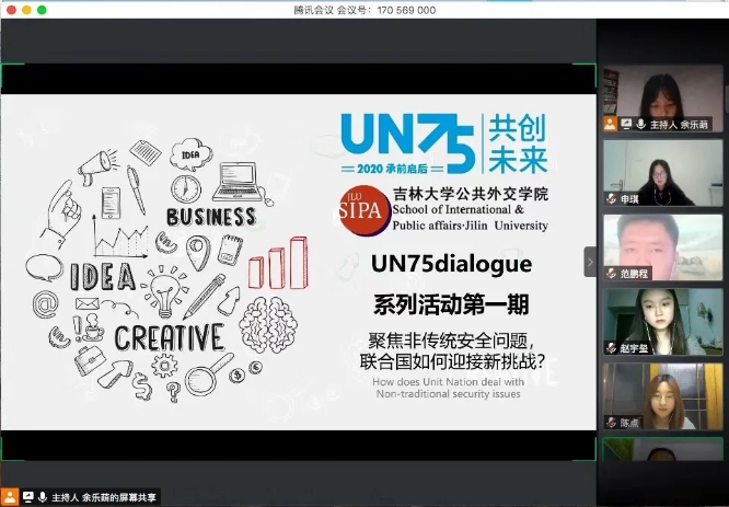 根据我院与联合国成立75周年纪念活动筹备工作特别顾问办公室的合作协议,我院有计划地在青年学子中展开系列对话活动,倾听当代青年人对世界发展和全球趋势的看法,并鼓励他们在全球事务中发挥积极作用。5月26日,我院UN75工作组就“非传统安全问题与全球应对(Non-traditional Security and Global Response)”这一议题展开了首次线上对话活动。
