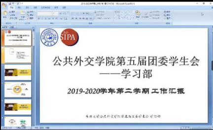 团委学生会不忘初心,恪守使命,积极贯彻落实“党有号召,团有行动”的方针,遵循“线下活动线上办,传统活动创新办”的原则,围绕健康养成、专业学习、志愿服务三条主线,相继推出SIPA健康月、SIPA读书季、“云端筑梦·与爱同行”三大精品活动,为疫情防控贡献属于外交人的青春力量。此外,成人论坛