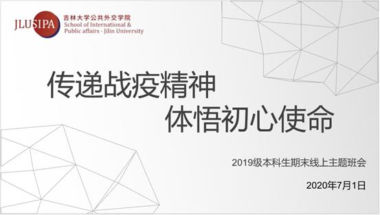 2019级全体本科生通过网络平台召开了主题为“传递战疫精神,体悟初心使命”的期末线上班会。
