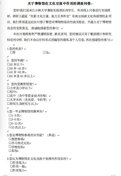 同时,团队面向青年人群发放关于“博物馆文化交流作用”线上问卷,为进一步实践调研和需求分析提供民意基础。