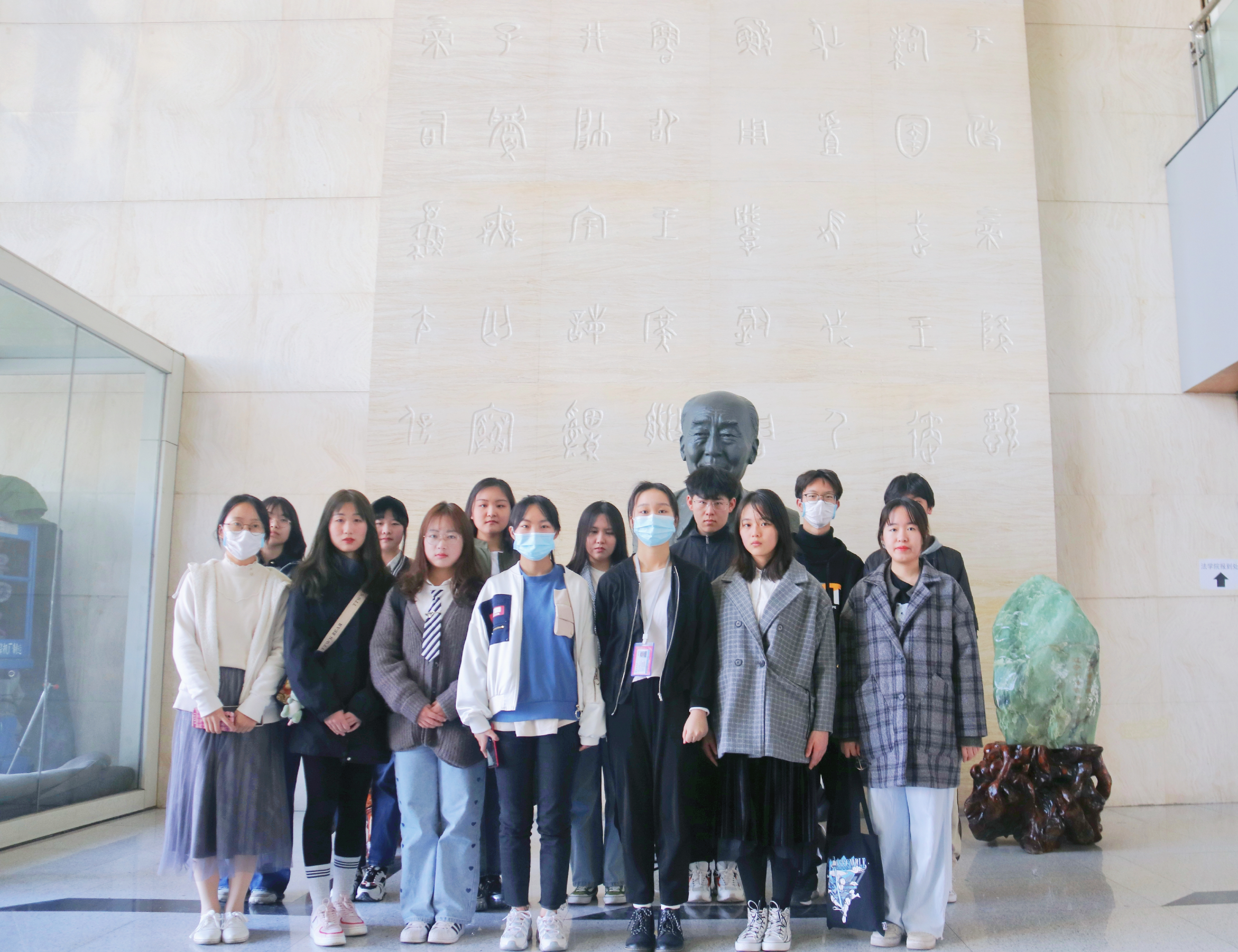 紧接着,同学们去瞻仰金景芳先生,先生是著名的历史学家、文献学家、易学大师。同学们站在雕像面前,安静地听完先生的人生履历,向先生的雕像、还有那雕像之后伟岸的灵魂鞠躬致礼,学生代表上前扫灰、献花,最后向先生的雕像告别。